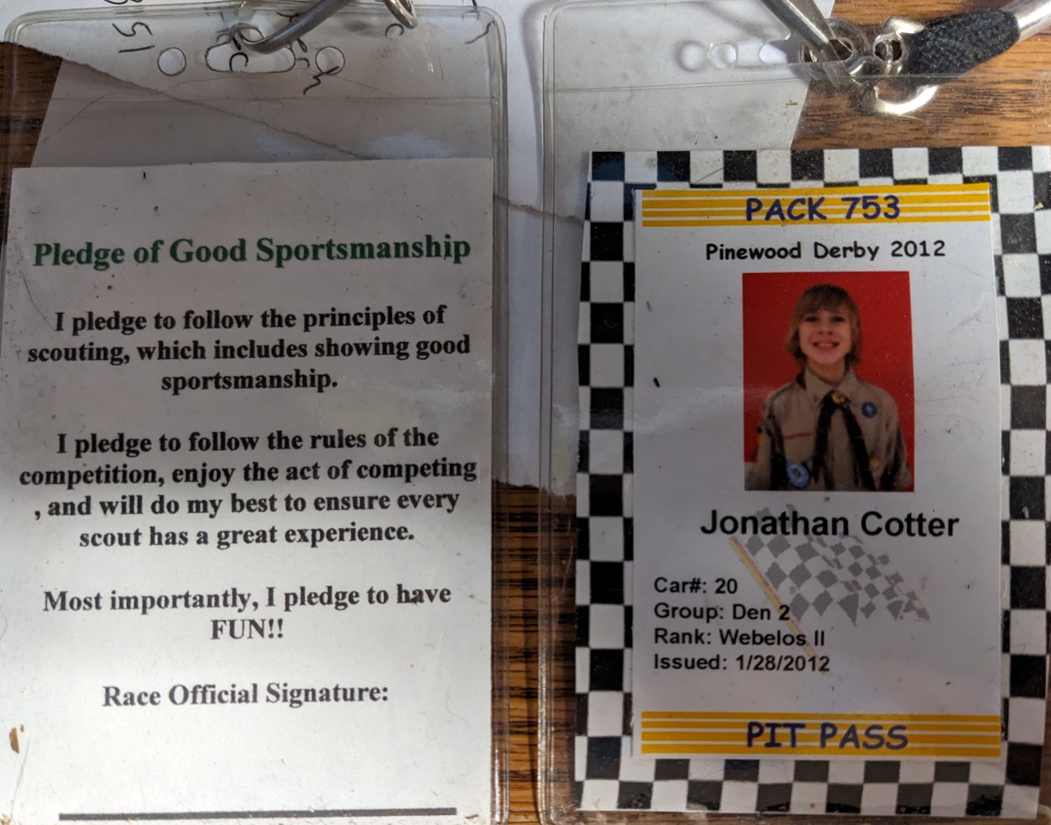 Pit Passes will be issued to each Scout racer. Scouts can wear their Pit Pass during our race-day event for the total racing experience. Scouts are requested to wear their Cub Scout Uniform for the Pinewood Derby and for their Pit Pass picture during check-in. See an example of what the Pit Pass will look like above!